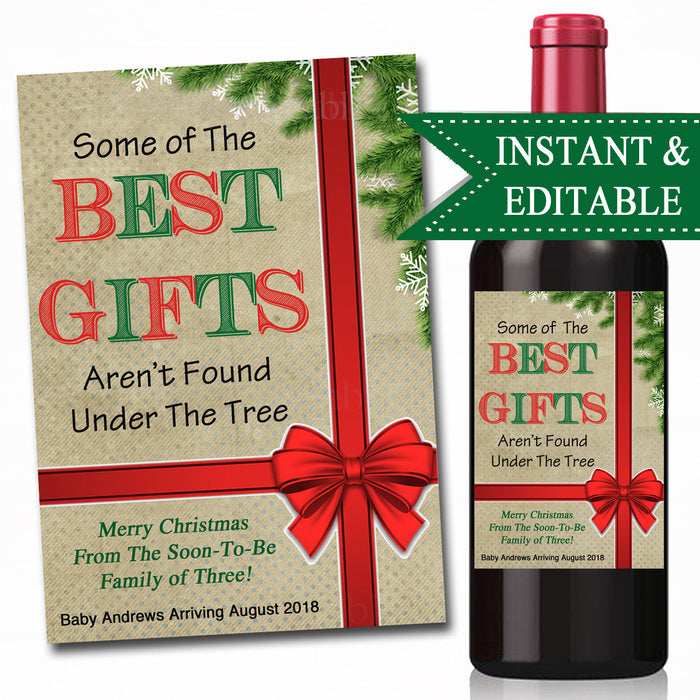 Pregnancy Announcement Wine Label, Christmas Printable Wine Label Holiday Bundle of Joy, Best Gifts Not Under Tree
