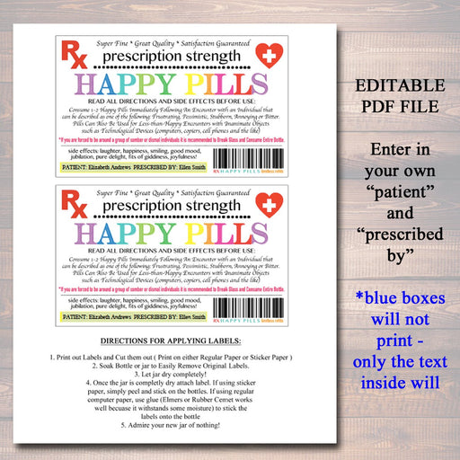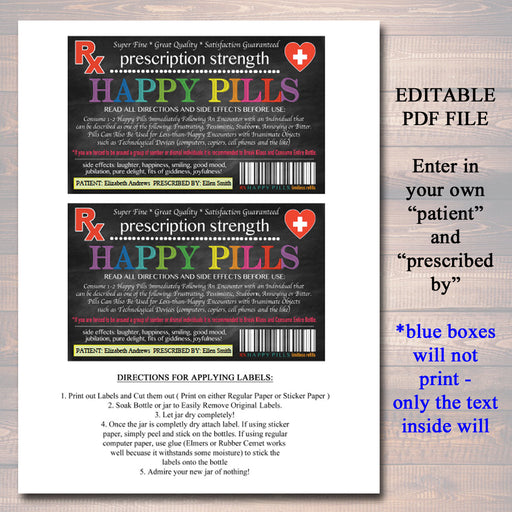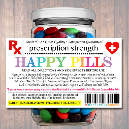 Happy Pills Label, Funny Gag Gift Professional Office Gift, Christmas Gift, Birthday Gift, Boss Gift, Cowork Gift Printable Label