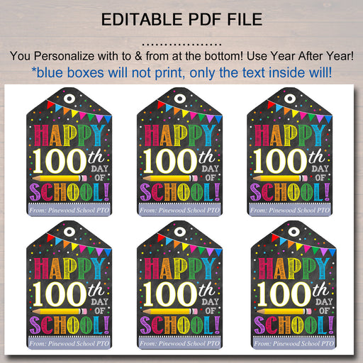 No reviewsHAPPY 100TH DAY OF SCHOOL PRINTABLE GIFT TAGS! Tags feature fun bright design on a faux chalkboard background - prints beautifully!________________...
