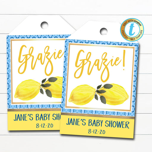 Lemon Gift Tags, Grazie Favor Tag - DIY Editable Template