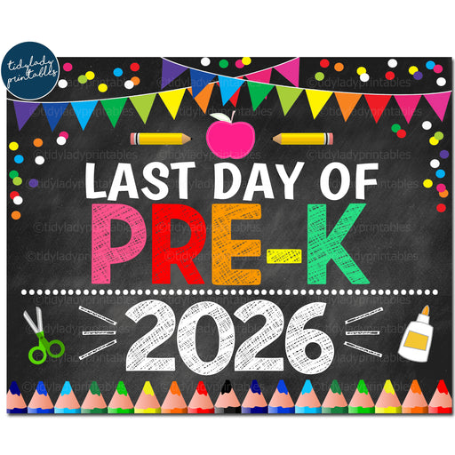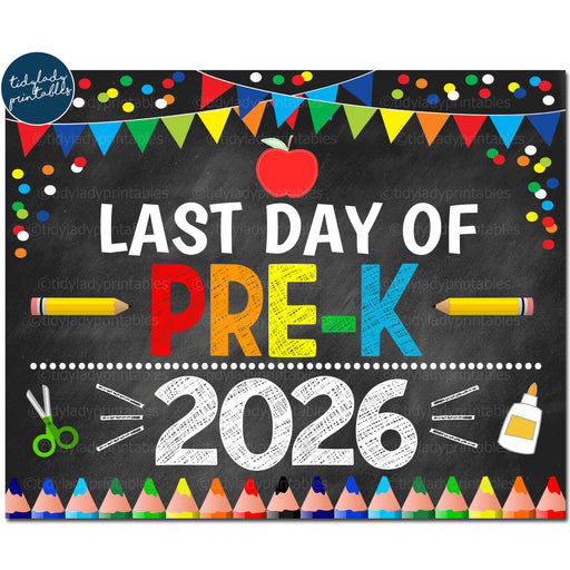 LAST DAY OF PRE-K 2026 Printable End of School Sign. THIS FILE IS NOT EDITABLE. YOU WILL RECEIVE A FILE EXACTLY AS PICTURED. Remember the last day...