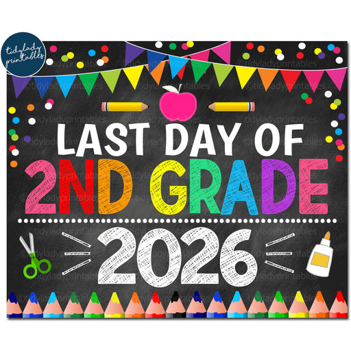Last Day of Second Grade 2026, Printable End of School Chalkboard Sign, Rainbow Colors Girl Confetti, 2nd Grade Digital Instant Download