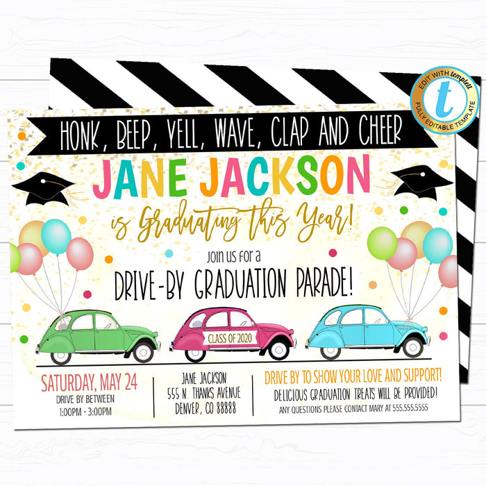 Drive By Graduation Parade Invitation - DIY Editable Template