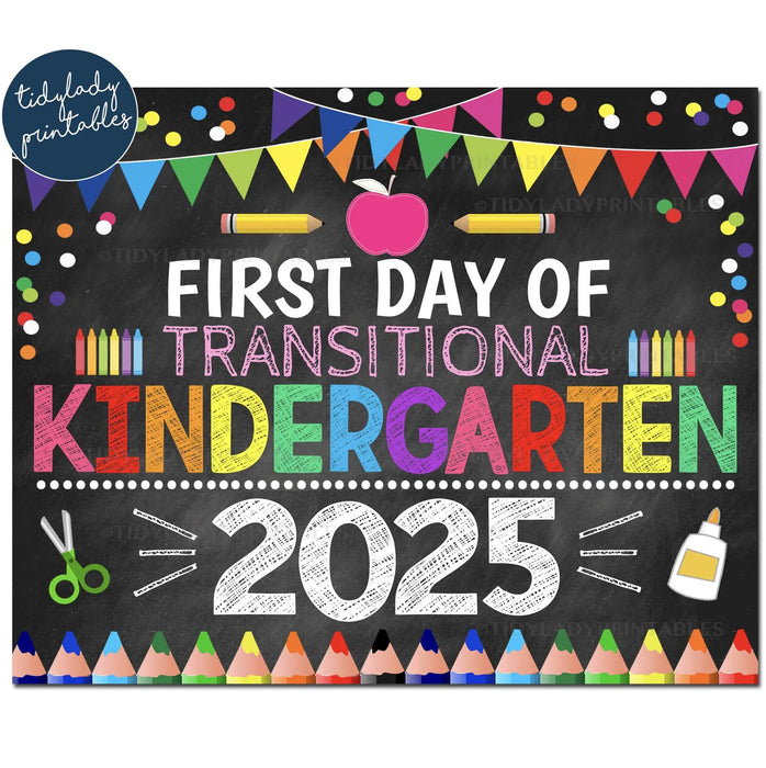 Capture the excitement of your child's first day of transitional kindergarten 2025 with this charming printable photo sign. Designed as a vibrant faux chalkboard, this ready-to-use file lets your child proudly showcase their milestone with a bright, colorful sign perfect for memorable photos. Preserve these special moments and celebrate the start of an unforgettable school year!